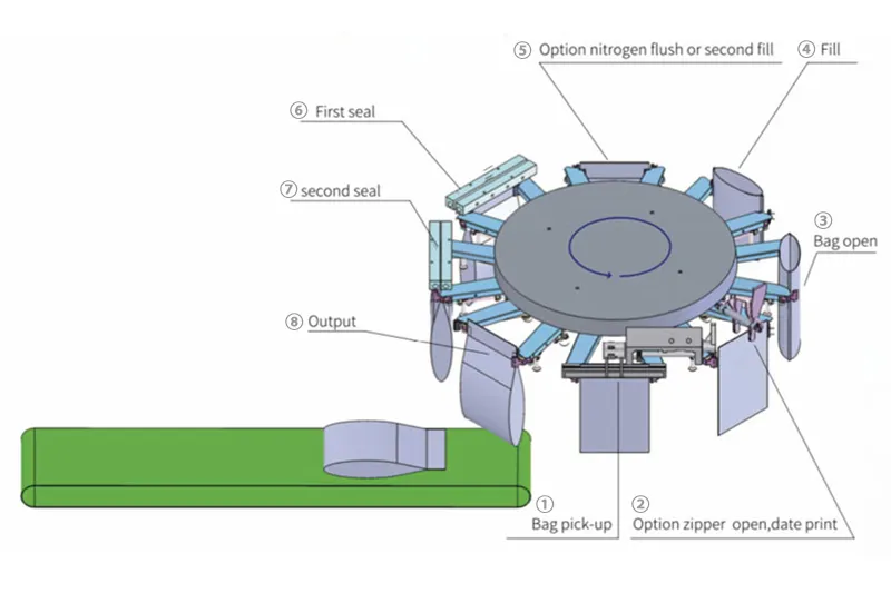 Diseñada para entornos exigentes, esta máquina rotativa para bolsas con fuelle combina resistencia, eficiencia y versatilidad. Fabricada con materiales de la mejor calidad, asegura condiciones higiénicas y una excelente durabilidad. Compatible con diversos sistemas de dosificación y alimentación, se adapta a diferentes necesidades de producción. Su automatización integral optimiza el rendimiento y disminuye los costos operativos.